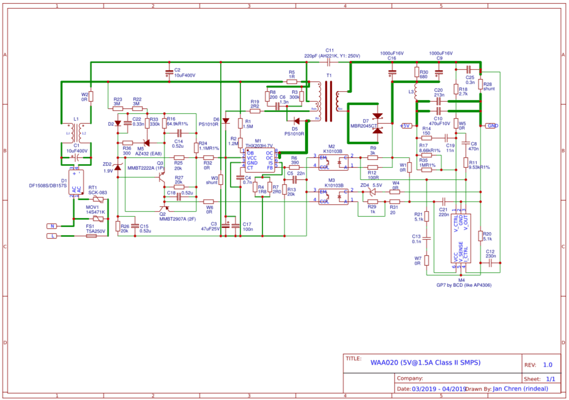 En el esquema no había nada que aumentase la potencia de salida, pero si se decía algo interesante: esta fuente, que era casi igual, y que también usaba el controlador THX203H estaba declarada como de 5V y 1.5A